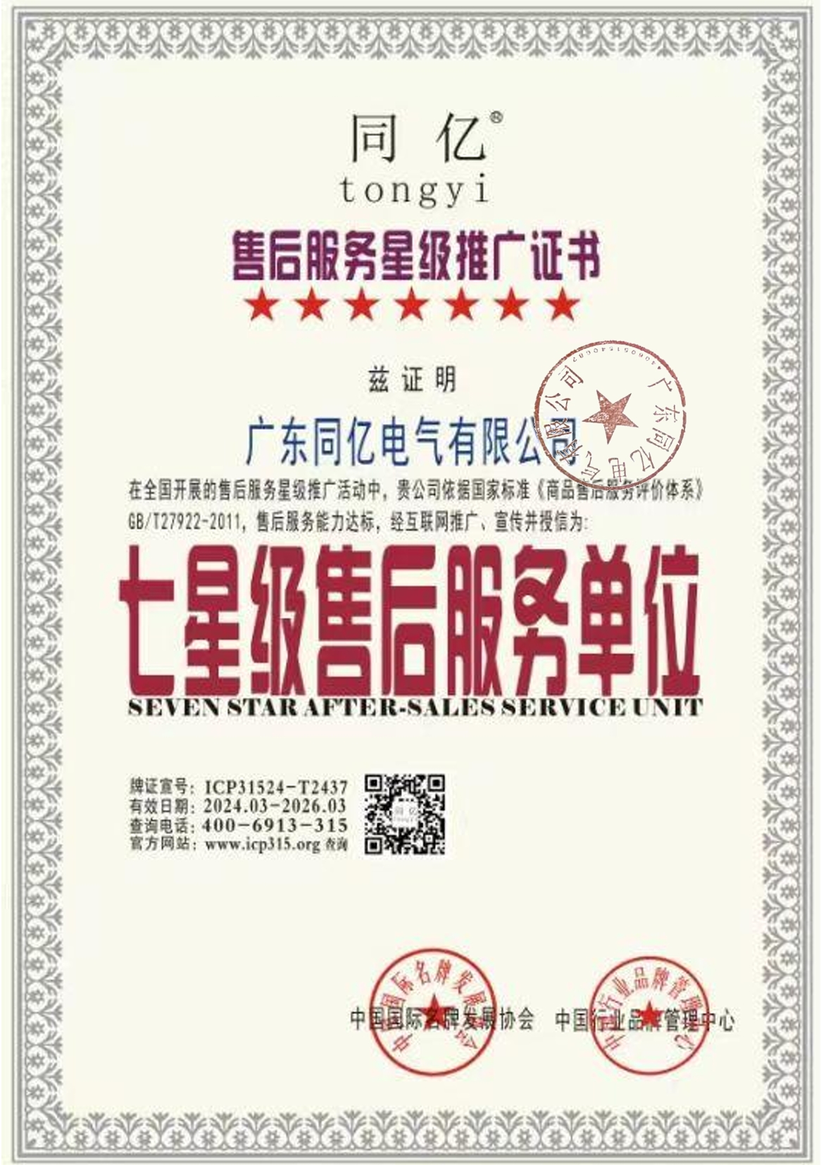 | 发证机构 | 中国国际名牌发展协会,中国行业品牌管理中心 | 发证时间 | 2024-03-31 |