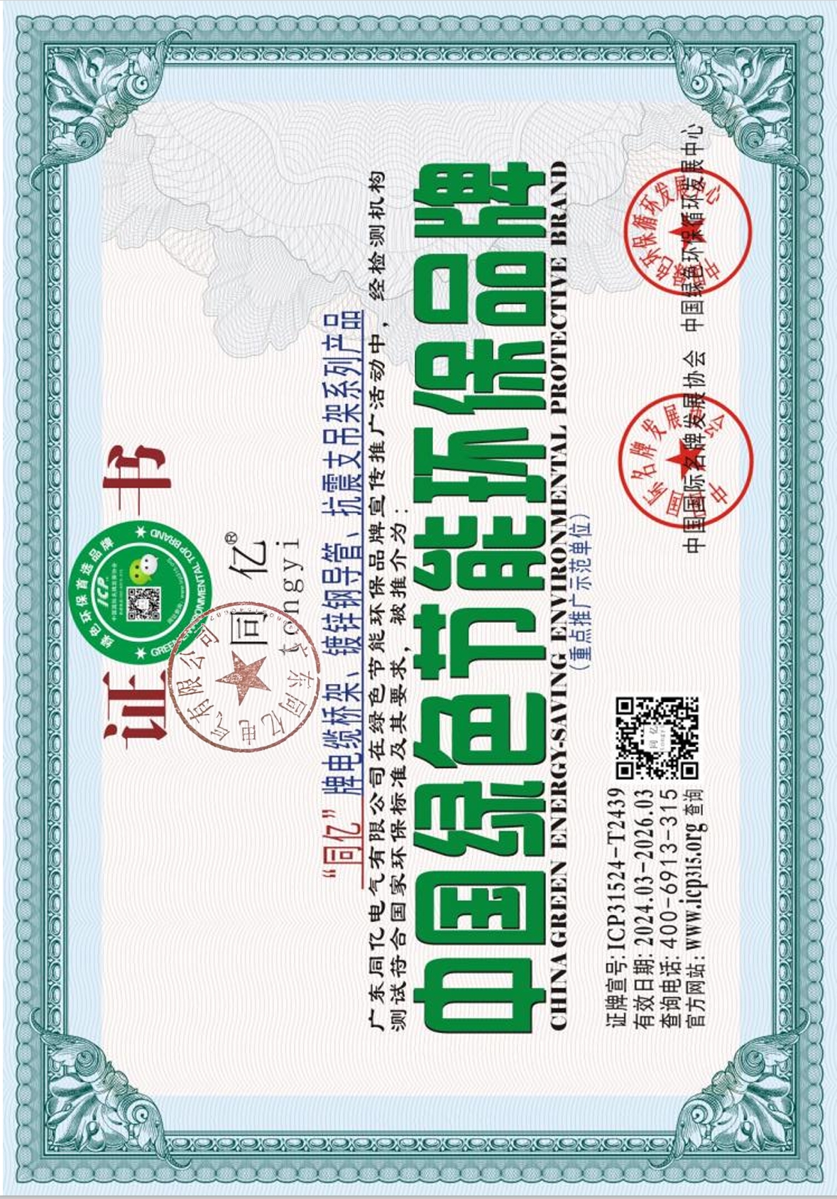 | 发证机构 | 中国国际名牌发展协会,中国绿色环保循环发展中心 | 发证时间 | 2024-03-31 |